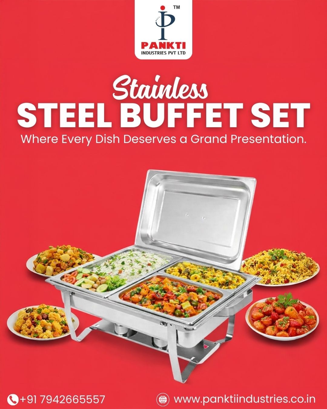 Contact Pankti Industries Pvt. Ltd. today to enhance your buffet presentation with premium stainless steel buffet sets.