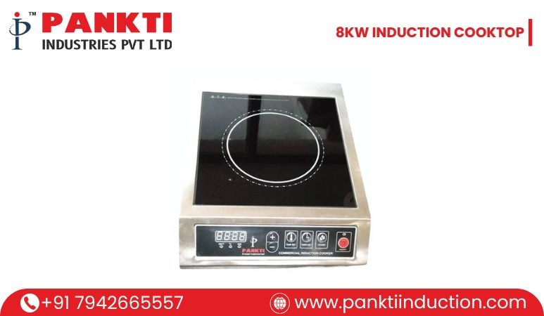 8kW Induction Cooktop Manufacturer in India. At Pankti Industries Private Limited, we understand the challenges of today’s busy restaurants and catering services. Speed, consistency, and safety are critical in professional kitchens—and our 8kW Induction Cooktop delivers exactly that. Designed with cutting-edge technology and durable materials, it is a reliable solution for chefs who need power without compromise. Key Specifications: • Power Output: 8kW – ideal for high-volume cooking • Application: Restaurants, hotels, catering setups • Material: Stainless steel body with elegant silver design • Control Type: Touch panel for user-friendly operation • Fast Heating: Yes – instant heat for quicker cooking cycles Strong Build with Modern Design Crafted from high-quality stainless steel (SS) with a sleek silver finish, this cooktop is engineered to last. Its smooth touch control panel makes operation simple, while the fast-heating feature ensures your cookware reaches the right temperature instantly. Built for restaurant use, it combines style with long-term durability. How It Works – Induction Technology Explained Unlike traditional gas burners or coil-based stoves, the 8kW Induction Cooktop uses electromagnetic induction. When induction-compatible cookware is placed on the glass surface, the magnetic field directly heats the pan rather than the surrounding air. This ensures: • No wasted heat – energy goes straight into the cookware • Faster cooking with precise temperature control • Safer operation since the cooktop surface remains comparatively cool • Uniform heat distribution for consistent results Benefits & Advantages Choosing an 8kW Induction Cooktop offers multiple benefits for professional kitchens: • High Efficiency: Saves up to 30% energy compared to flame cooking • Speed: Rapid heating reduces cooking time during peak hours • Safety: No open flames, reducing fire and burn risks • Precision: Accurate temperature settings for consistent outcomes • Durability: Stainless steel build ensures long-lasting performance • Easy Cleaning: Smooth surface design for quick maintenance Trusted Manufacturer & Supplier As a leading 8kW Induction Cooktop Manufacturer in Ahmedabad, we focus on innovation, durability, and customer satisfaction. Each unit undergoes strict quality checks to ensure reliability in demanding kitchen environments. We are also a reputed 8kW Induction Cooktop Supplier in India, delivering to restaurants, hotels, and catering businesses nationwide. With prompt service, competitive pricing, and dedicated support, we have earned the trust of culinary professionals across the country. What Makes Pankti Industries the Right Choice? • Proven expertise in professional kitchen solutions • Robust, high-performance induction cooktops • Nationwide distribution with on-time delivery • Strong after-sales service and customer care Get in touch with us today to upgrade your commercial kitchen with advanced induction technology.